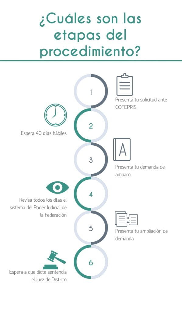 Una vez que tengas la carta con la negativa por parte de COFEPRIS puedes iniciar tu proceso de amparo. Para esto tienes que ingresar el formato de amparo junto con tu carta negada en tu juzgado local.