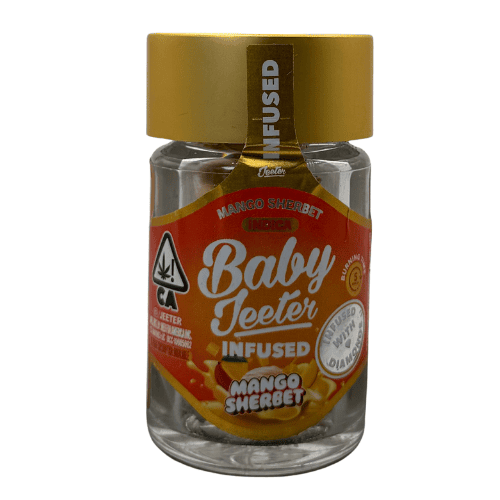 Los Baby Jeeter Mango Sherbet infusionados son una edición especial con flor premium, extracto de diamantes y kief. Esta potente mezcla índica ofrece una experiencia profunda, ideal para momentos de descanso, alivio corporal o meditación. Aunque el producto mantiene su integridad, su fecha de caducidad a inicios de 2025, por lo cual se encuentra con descuento especial. Se recomienda precaución en su consumo y conservar en lugar fresco y seco. No apto para pacientes principiantes