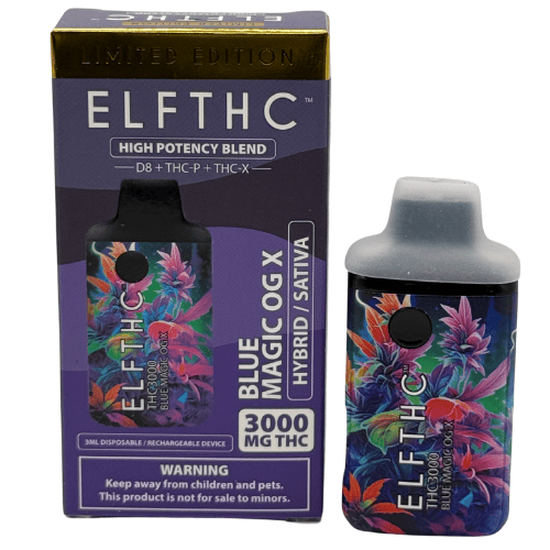 Experimenta una potencia superior con el ELFTHC Disposable Vape Blue Magic OG X, una mezcla equilibrada de THC (D8 + THC-P + THC-X) con 3000 mg en un formato recargable.