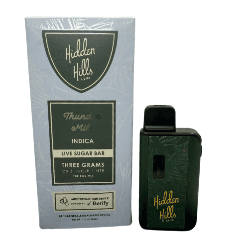El Hidden Hills Club Thunder Milk Live Sugar Bar es una joya del vapeo premium que combina potencia, suavidad y elegancia. Con una mezcla avanzada de D9, THC-P y HTE (High Terpene Extract), esta barra de 3 gramos ofrece un equilibrio perfecto entre sabor intenso y efecto profundo.