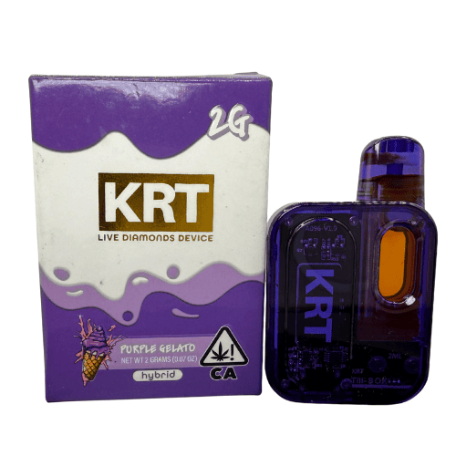 El KRT Purple Gelato es una joya del vapeo con su mezcla perfecta de potencia, sabor y diseño. Su fórmula de Live Diamonds asegura una alta concentración de THC en forma cristalina, lo que se traduce en una experiencia intensa y placentera, ideal para pacientes que buscan alivio sin sacrificar funcionalidad. El perfil híbrido de Purple Gelato brinda un subidón inicial creativo seguido de una relajación profunda, ideal para tardes tranquilas o sesiones sociales.