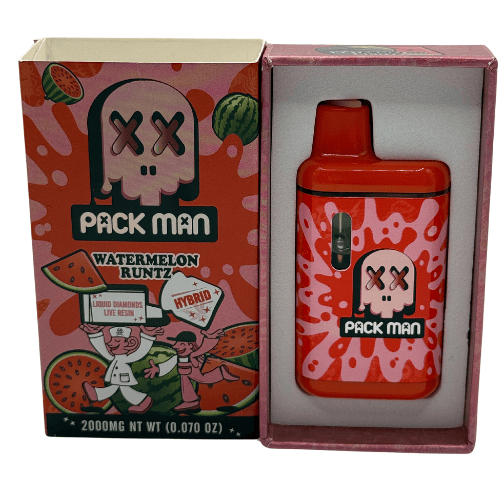 Dale play al sabor con Pack Man Watermelon Runtz, la mezcla perfecta entre frescura frutal y potencia cannábica. Su extracto de Liquid Diamonds + Live Resin garantiza una experiencia intensa, ideal para elevar tus sentidos y compartir momentos inolvidables.