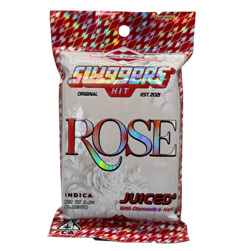 Sluggers Hit ROSE Juiced reúne una selección premium de flor indica infusionada con diamonds y solventless hash, creando una fumada suave, floral y profundamente relajante. Este paquete incluye 5 pre-rolls, listos para usar, con un perfil aromático elegante que mezcla tonos florales con matices terrosos dulces.